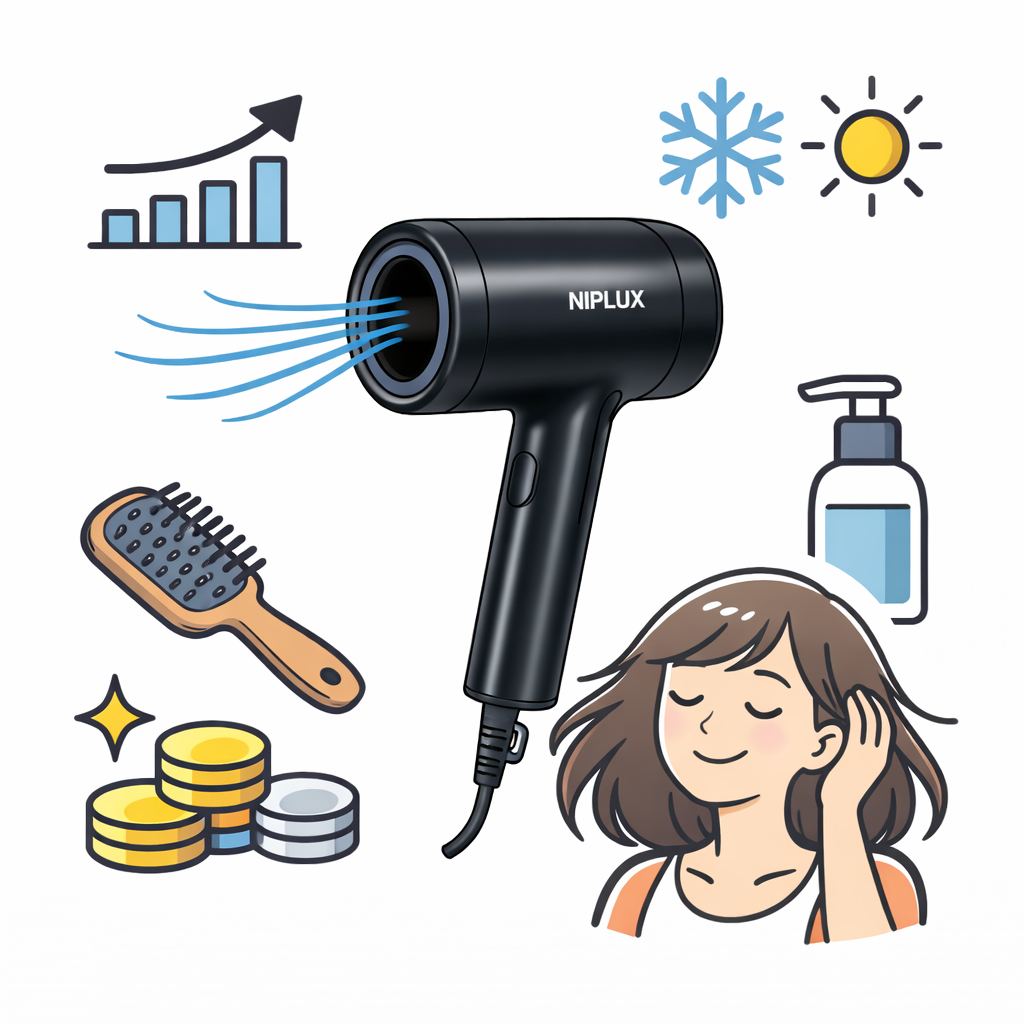 高級ドライヤーほどの価格は出せないものの、毎日のヘアドライを快適にしたい方にとって、NIPLUX ドライヤーは非常に現実的な選択肢です。